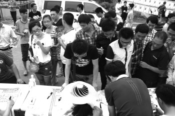 ◤不少单身青年现场报名23日举办的相亲会。