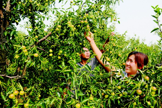 20日,在沾化县下洼镇沾化冬枣生态旅游园内,枣农何本伟正在对沾化冬枣园进行最后一遍疏果。今年,沾化冬枣虽然遭受严重旱灾,但沾化县通过深入实施沾化冬枣产业标准化建设工程,采取多种措施抗旱抗灾,目前全县50万亩沾化冬枣长势良好,丰收在望,预计今年沾化冬枣总产可达7亿斤。 本报通讯员 陈方明 高占根 本报记者 王晓霜 摄影报道