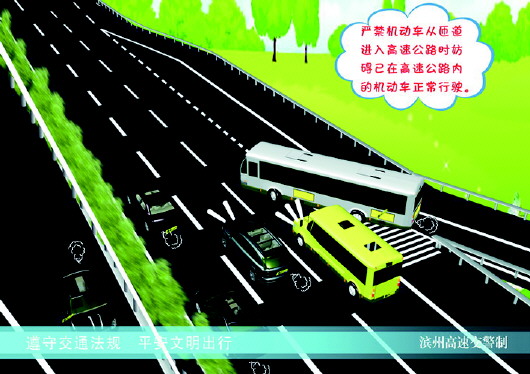 ◤严禁机动车从匝道进入高速公路时妨碍已在高速公路内的机动车正常行驶