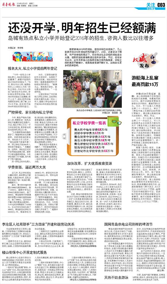 第Q01版:今日青岛