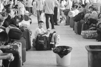 26日,在德州火车站候车室,不少小学生在和家人一起过完暑假后,又踏上了回去上学的列车。