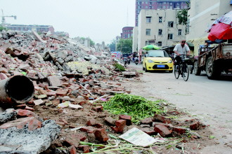 26日,记者在市中区少年南街处获悉,原市皮鞋厂已被拆迁,原有的院内菜市场及沿少年南街商铺一律被规划整改,同时这也是继少年南街道路重新铺设完成后,更加全面和深入的城市改造。图为少年南街的东侧拆迁工地。 本报记者 赵艳虹 韩微 摄影报道