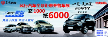 机不可失,时不再来!济南利航风行汽车全系钜惠齐鲁车展,交1000抵6000。更有高品质家轿S50及新一代商务用车CM7华丽登场!买风行,到利航!利航为您提供买车上牌一站式服务!