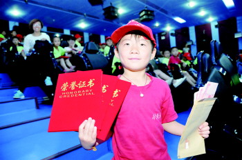 每期活动结束后,主办方根据最后卖报的数量和小选手的表现,对表现优异者给予现金奖励和旅游奖励。每期金奖2名,奖励现金500元;银奖8名,奖励现金300元;铜奖20名,获赠一份全年《齐鲁晚报》。在游乐城4D电影城里,作为活动的主办方,本报工作人员按照名单一一为获奖小选手颁发了奖品。