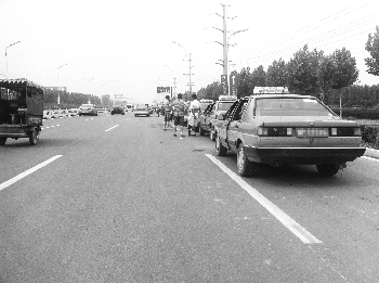 价格调整后,出租车行业将受较大影响。图为城区一加气站前,等待加气的出租车。(资料片)