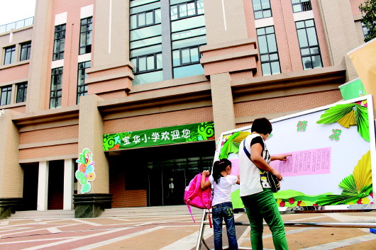 8月31日,济南宝华小学新生报到,一位家长带着孩子到学校报到。 本报记者 李飞 摄