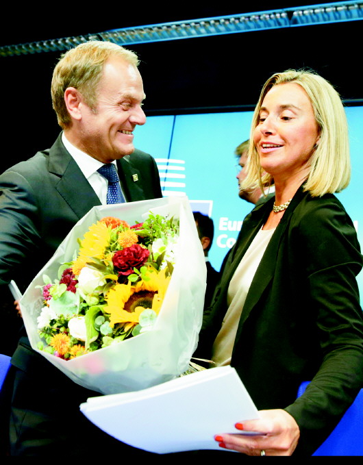 刚闭幕的欧盟特别峰会在人事问题上意外实现“短平快”,选举波兰总理图斯克为新一届欧洲理事会主席,任命意大利女外长莫盖里尼为欧盟外交和安全政策高级代表。至此,加上此前已确定卢森堡前首相容克为新一届欧盟委员会主席,欧盟新“三巨头”尘埃落定。