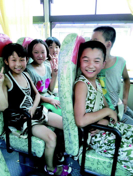 ◤9月1日新学期开学,章丘共有192辆标准校车投入运营,17000名乘车学生将坐上安全、舒适、放心的标准校车。图为孩子们坐上新校车,无比新奇和快乐。 本报记者 支倩倩 摄