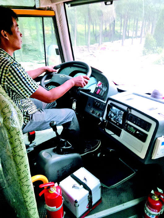▲开新校车走在乡村路上,王志强精力特别集中。