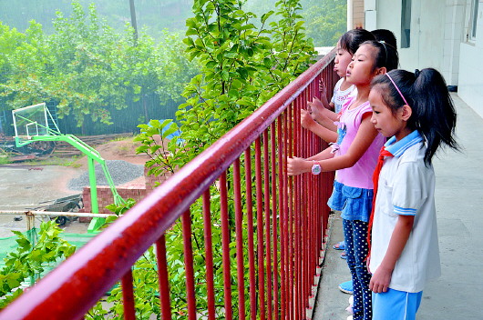 每次下雨,山里的孩子都期盼能在学校门口看到父母来接。