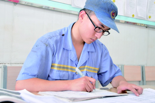 齐本祥在工作之余刻苦钻研学习业务知识。