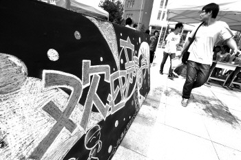 当日早上6点多,高年级的志愿者们来到报到区域,摆好各种桌椅,备齐入学手续材料,等待新生们前来报到。