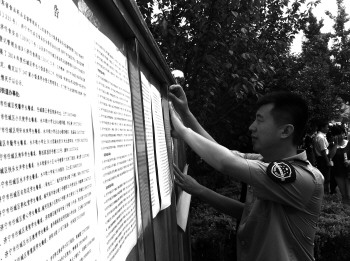 食品药品监管人员张贴小饭桌名单。本报记者 李倩 摄