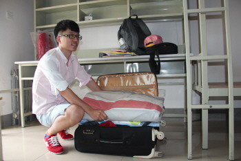 要建文来到宿舍后,打开行李箱准备铺床铺。 李珍梅 摄