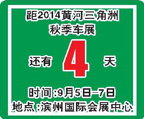 距2014黄河三角洲秋季车展还有 4 天时间:9月5日-7日地点:滨州国际会展中心