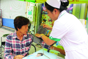 漱玉平民大药房工作人员给市民量血压。 本报记者 唐菁 摄