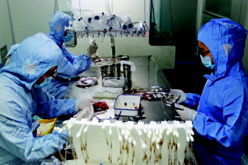 省脐血库工作人员正在制备脐血。
