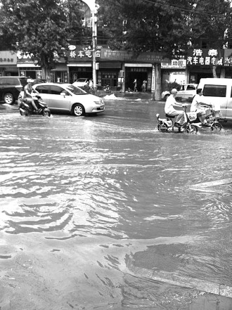 “当时水流特别大,不一会大部分路面就已经被水流淹没了,而且积水的高度已没过路边的路沿石。”在三角花园附近摆摊的市民告诉记者,一些市民路过时只好拎着鞋子,骑电动车的市民则翘起双脚,因不知积水深浅,过往车辆也放慢了速度。一位在附近吃饭的市民告诉记者,他三点多到君山西路时,水流已经把道路淹没。“水冒出来时很清,一看就是自来水管道破裂了。”目击者说。