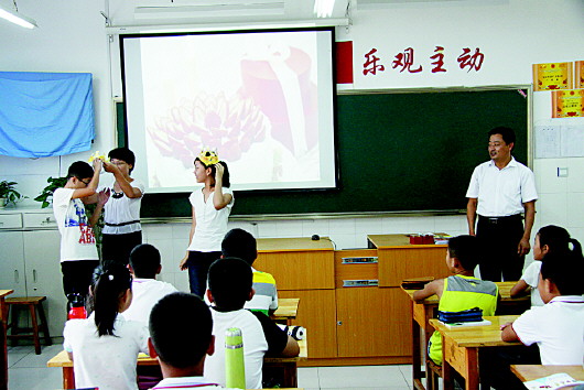 “春风吹动清纯的脸庞,春雨滋润缤纷的梦想,春花孕育金秋的硕果,春光辉映未来的辉煌……”开学第一天,记者来到章丘市实验小学,学生们正高兴地唱着校歌。