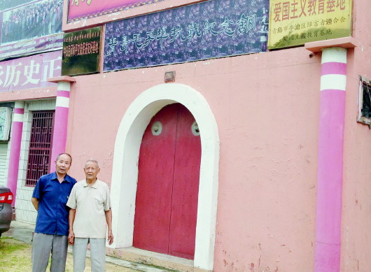 赵有海(右)和丁春源在纪念馆门前合影。 本报记者 姜宁 摄