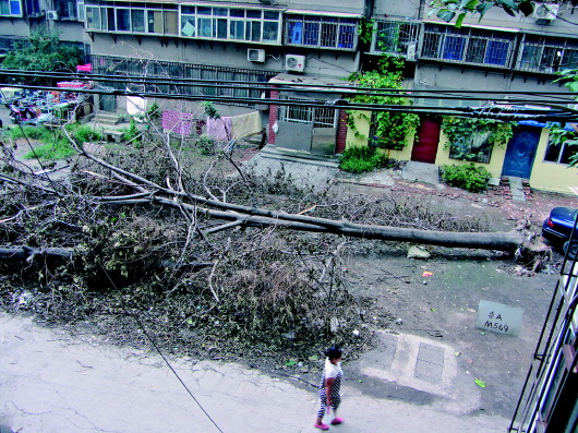 记者调查>> 三棵树被风刮倒,横在楼下已半月