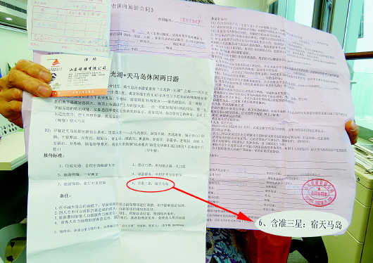 据史女士介绍,8月26日,她和同事刘女士一起,在市中区杆石桥银座旅游报名到沂水游玩,每人缴纳了346元,接待社是济南万里行旅行社。在旅行社当时提供的接待标准里约定,住宿是天马岛上的“含准三星”酒店,“我想着三星级酒店,肯定条件挺好的。”史女士说,可当她8月30日晚真正住进去的时候却大失所望。“当时说好住天马岛,可是却住在了沂水县城,第二天早上坐了两个小时的车才到了天马岛,而且住宿的地方卫生条件很差,厕所臭烘烘的,我们找导游,导游也没给我们换房间。”