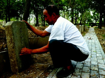 杨智忠擦拭着无名墓碑上的尘土,这里的每一个墓下都有一段壮烈的历史。