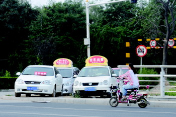 近日,在三八路岔河东岸,四辆二手车占据路边的空地进行展卖。 本报记者 马志勇 摄