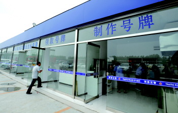 该分所负责人吴涛告诉记者,为方便群众办理车驾管业务,特将号牌制作设备引入市车辆管理二所。现在,前来办理牌照业务的市民,只需先到办证大厅业务受理窗口登记、交费,再持受理凭证到新车装牌处窗口,等待约20分钟便可领到新车牌。据其介绍,这里无论是大、中型汽车号牌(黄牌),还是小型汽车号牌(蓝牌)都能现场制作。