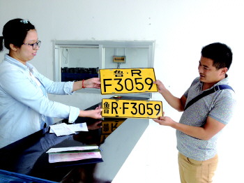◥来自巨野的叶师傅高兴地领取了车牌。