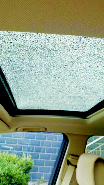 今年4月中旬,王女士在青岛一家奔驰4S店购买了一辆型号为GLK300的越野车,如今已经行驶了1万公里左右。8月25日,王女士开车行驶在高新区的路上,耳边忽然传来一声巨响。“很像燃气爆炸的声音,抬头一看,竟然是天窗玻璃破裂。”王女士说,当时她吓得不轻,一路上提心吊胆地开到目的地。8月26日,她将车开到4S店要求免费维修,起初4S店工作人员称天窗爆裂是外力造成,不愿负责。后来通过协商,三天后4S店才答应为王女士免费更换天窗玻璃。