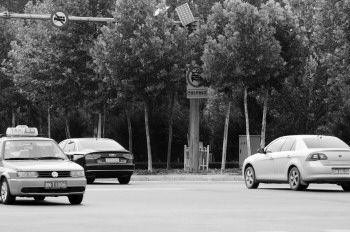 9月3日,在东方红路与崇德一大道路口处的交通禁行标志被树木遮挡,只有在侧面的空隙中才能看见。 本报记者 马志勇 摄