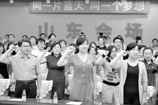 从今年7月初开始,山东省教师教育学会在全省范围内发起了招募教育志愿者的行动,目前已有1383名具有中级以上专业技术职务的教师报名。学会还开展了志愿者会徽、会旗、口号、歌词征集活动,确定以“同一片蓝天,同一个梦想”作为口号。