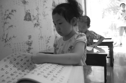 普贤学堂在这里开办了两年多,每天早晨8点到9点,高颖都会坐在门口,迎来十几个从济南各个城区来读经的孩子,小的四五岁,大的已经过了上小学的年龄。
