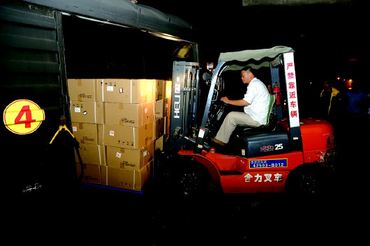 装货上车——适用小件货物集装化的电动叉车等作业机具,提高了站台装车组织和到站装卸车作业效率。