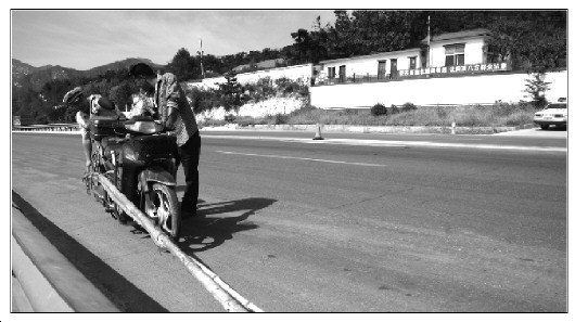本报9月9日讯 (记者 于鹏飞 通讯员 石刚) 近日,莱城区大王庄镇陈某上演了一出惊险的摩托车杂技,着实把执勤民警吓得够呛:一辆摩托车载着两根10多米长的竹竿,就像是喝醉了酒,在公路上左摇右摆,过十字路口时撞上一辆电动车。