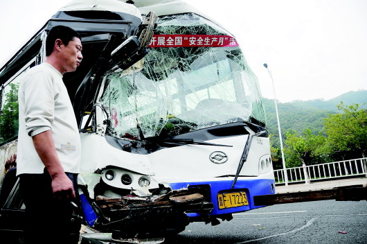 王先生坐在45路车最后一排右边车座上,急得连车门都没走,直接跳窗了。“亏了我不是在左边,不然我现在就去医院了。”王先生庆幸的同时,也替坐在左侧的乘客担心,“车窗后面凹进来一块,事发时有两乘客被顶到前面去了。”