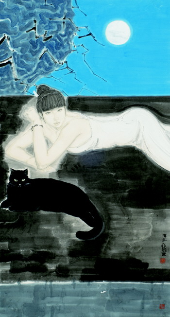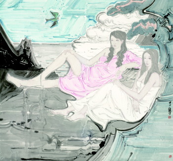 张望教授的绘画风格,具有强烈的时代感,他以扎实的中国画人物基本功和当代的笔墨理念,艰辛而富有成效地探索出了中国画笔墨新语境。他的画面讲究在整体的结构中不断建立新的笔墨感觉和认识,这使他的笔墨与造型在都市文化的秩序中越加清晰。