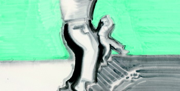 他相信当水墨在现代都市能作为心灵承载的符号时,它的意义应该是现实和宏远的。在笔墨符号的思考中,张望笔下都市人物的形态带有象征式的人物形象,其性格与情节都化作了生存状态的再造形象,它们超越日常生活却又是观照中的都市意象。这对于以在乡土情境创作中有着显著成果的张望来说,是一个突破,他创作的都市笔墨语境仍传承着以往的笔墨情感,但是已从“表达”转向“表现”。这样的意义从整体上呈现了当代水墨的话语感受。当然都市水墨是一个硕大宽广的平台,对都市水墨的表述——上溯其根源——仍然是立足于笔墨文化精神的体验。