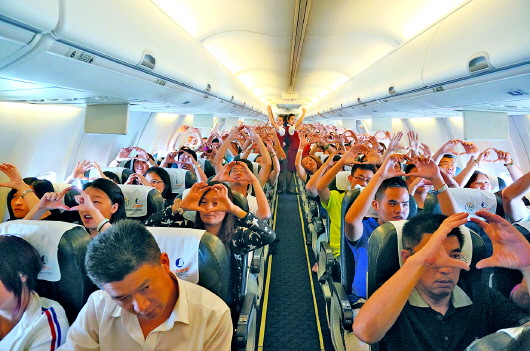 在中秋节的航班上,客舱部青岛大队纪雯子菡乘务组在由昆明至南京的航班上以“团团圆圆庆中秋”为主题,开展了丰富多彩的特色活动。旅客一踏入客舱就耳目一新,祝福的海报、悬挂的福袋以及月饼饰物散发出浓浓的节日气氛。乘务员喜气洋洋欢迎旅客登机:“您好,中秋节快乐!”旅客们纷纷回应:“谢谢,也祝你们中秋节快乐!”“过节也没有休息,你们辛苦了。”