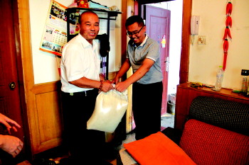 中秋节前夕,古槐街道县前街社区开展走访慰问困难群众活动,街道和社区工作人员走访困难户34家,同他们拉家常、问冷暖,详细询问他们的身体、生活、工作情况,并送上慰问金和大米、食用油等慰问品。