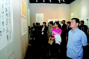 13日上午,由菏泽市文联主办,牡丹区文联、书协、美协等承办的喜迎艺术节·庆祝建国65周年——“黄鹤楼酒”杯书画大奖赛在曹州书画院举行。此次书画大奖赛共征集书画作品156幅,特邀作品62幅,最终确定12幅获奖作品。书法作品有草、隶、篆,美术作品有花鸟、山水、人物,可谓丰富多彩、各有特色。