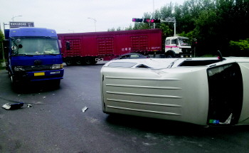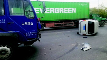 12日下午5点左右,在正阳西路与丰和路路口处,一辆大货车将一辆面包车撞出5米开外,所幸面包车司机并未受伤。目击者称,事故系大货车闯红灯所致。目前交警正在调查事故原因。