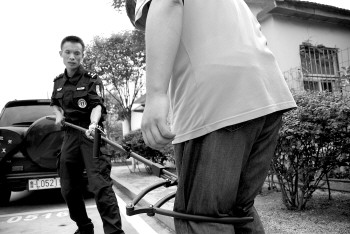 “防暴处突约束叉,主要针对手持刀、棍等器械的暴徒。”特警队员说,在制服犯罪分子时,防暴处突约束叉可以将其牢牢捆住。