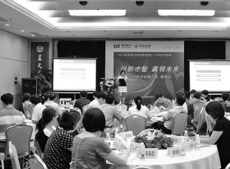 12日,“创新才智,赢领未来”2014年浦发银行跨境联动金融沙龙(威海站)举办。图为浦发银行总行贸易与现金管理部产品专家黄晓君在做跨境联动服务方案介绍。
