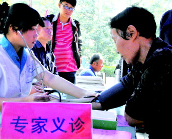 现场,聊城市耳鼻喉医院的医护人员李金梅、崔亚鲁也赶往社区义诊,为居民测血压,进行耳鼻喉、牙科、外科等方面的专业诊断。