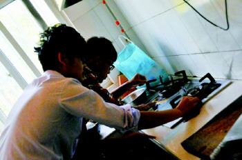 “又学了一招,回家检验检验黑米。”业主杨女士刚从聊大化工学院志愿者们手中学会检验黑米。现场除了检验黑米、鸡蛋真假外,聊大化工学院的志愿者们依旧为60岁以上老人家庭免费清洗灶台。