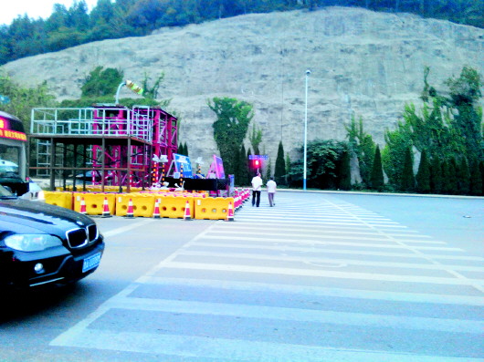 13日下午5点多,记者在旅游路与环山路交叉口看到,东西向的双向4车道旅游路上往来车辆速度较快,车流一直没有间断。记者用秒表计算,发现人行横道上的绿灯先亮17秒然后闪3下,20秒时变为红灯,红灯则亮了整整3分钟。