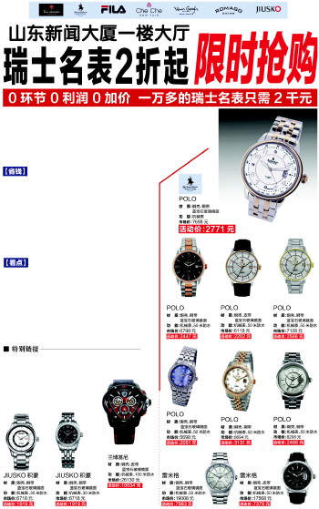据介绍,此次活动所有瑞士名表都是原装进口,全部由瑞士工厂提供,未经任何中间环节,砍掉代理商,砍掉零售商等层层加价,确保销售到济南市场的手表全部为工厂直销超低价。