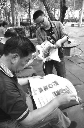 拿到报纸,市民们边走边看。本报记者 李岩松 摄